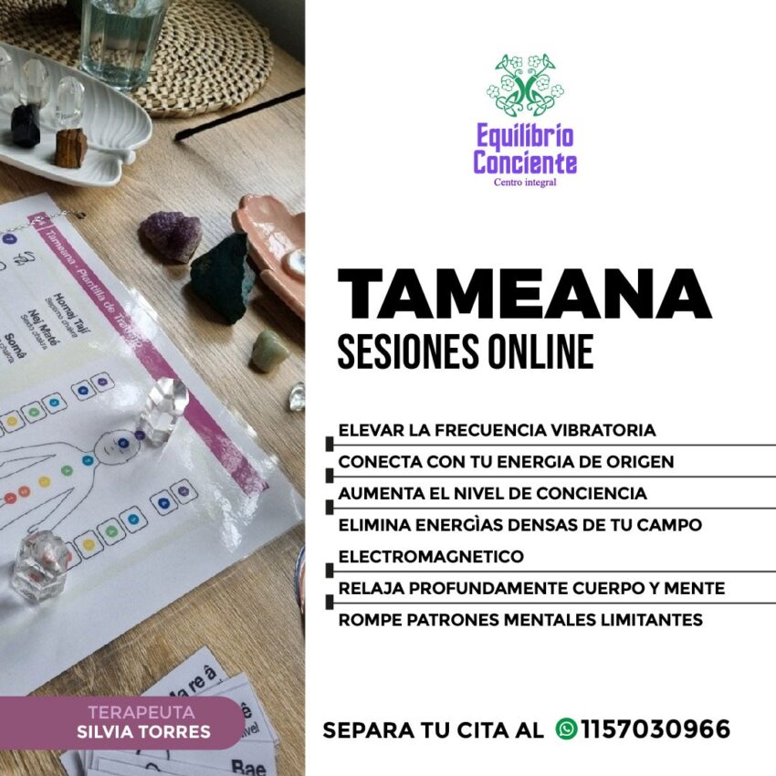 Tameana es un trabajo vibracional profundo, que eleva la vibración del cuerpo a escalas superiores para modificar aquello que no corresponde a esa escala de vibración. Se trabaja desde la no mente o la no lógica dejándose llevar por el sentir y abriéndose a la energía del corazón. Es un trabajo potente que impulsa a cada individuo a experimentar su transformación en diferentes niveles dependiendo del estado de consciencia de cada ser
